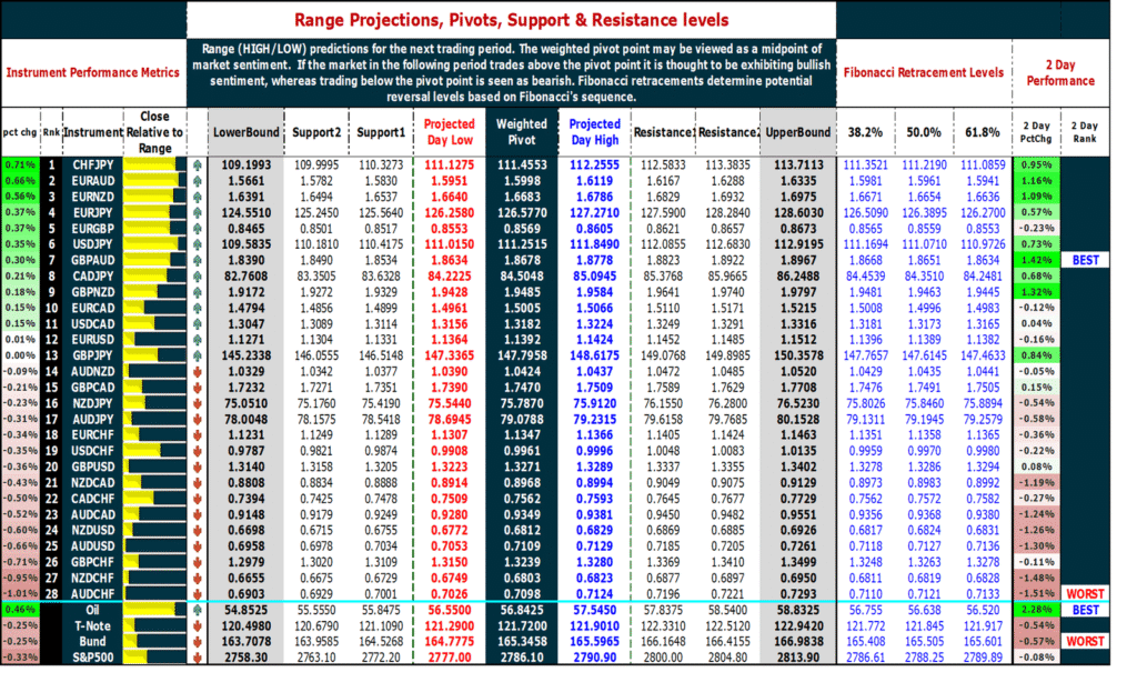 February 26, 2019 – Market review and metrics for Forex, Oil, T-Note, Bund, S&P500. Pivot points, Support, Resistance & Fibonacci