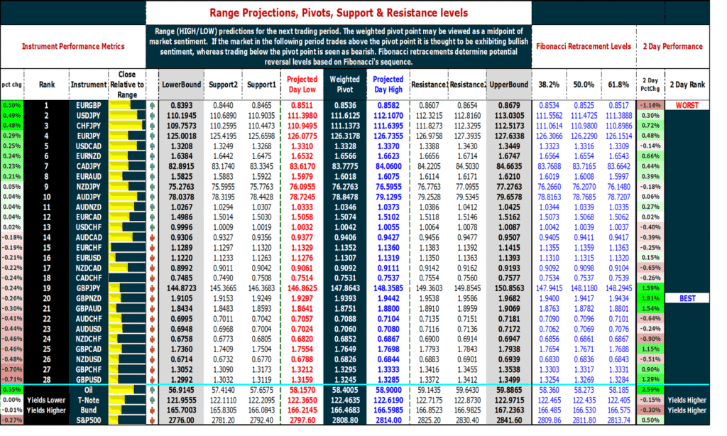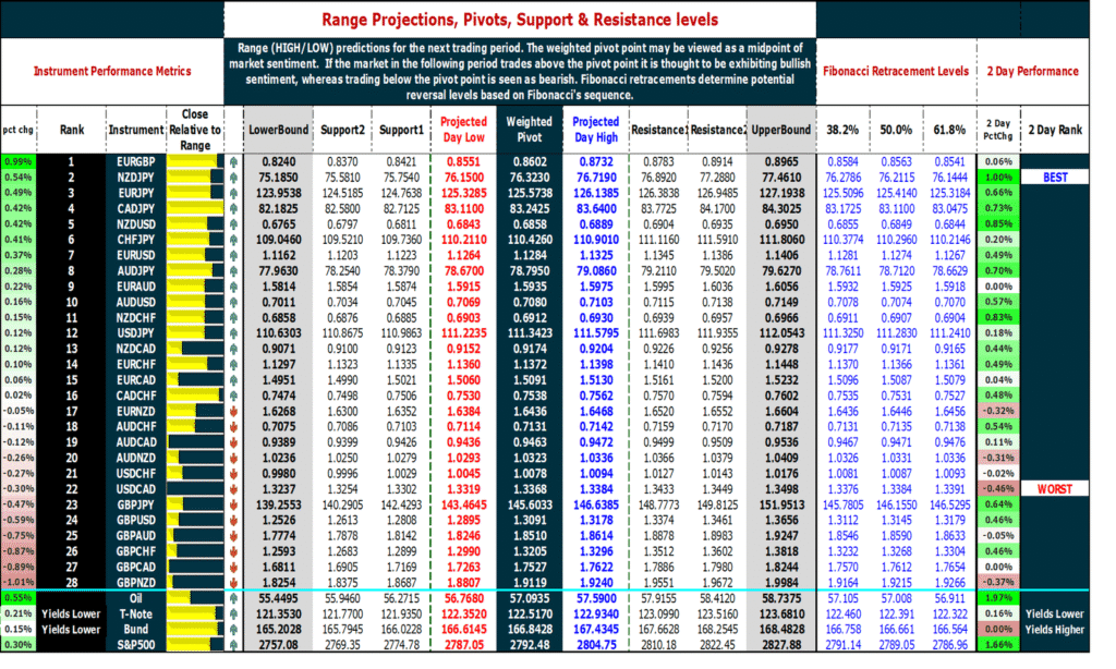 March 14, 2019 – Market review and metrics for Forex, Oil, S&P500 & Yields. Pivot points, Support, Resistance & Fibonacci